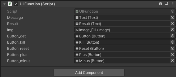 각 사용할 버튼, 표시할 텍스트, 게이지 바로 사용할 이미지를 사용할 스크립트에 할당해 줍니다.